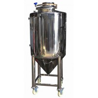 啤酒发酵罐罐体为圆柱形,顶盖为碟形,底盖为采用60°~90°倾斜度的锥形有利于罐中酒液对流强烈,发酵速度快,而且利于排放酵母和发酵罐中杂质;在酒精发酵过程中,为了回收CO2气体及其所带出的部分酒精,发酵罐宜采用密闭式。罐底部有手孔、与罐顶连接的CO2、空气、CIP等的进出管、内容物容积测量装置、空罐探头及保压装置等。